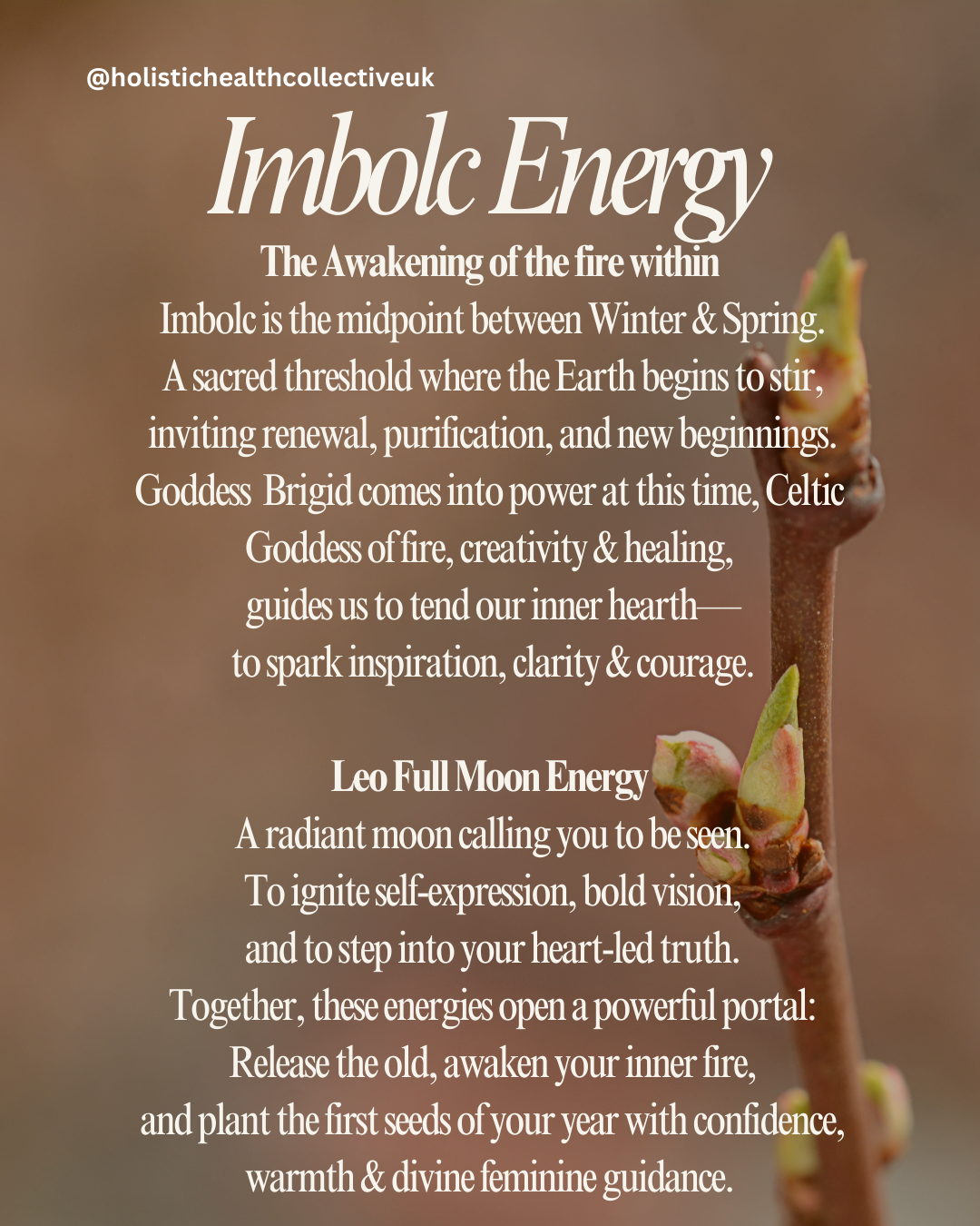 Nature gives us hope of all that is to come in Spring, so Imbolc is the perfect time to embody a sacred pause and feel into what you wish to put your energy towards for the astrological new year and all the wisdom you are bringing forward from winter.