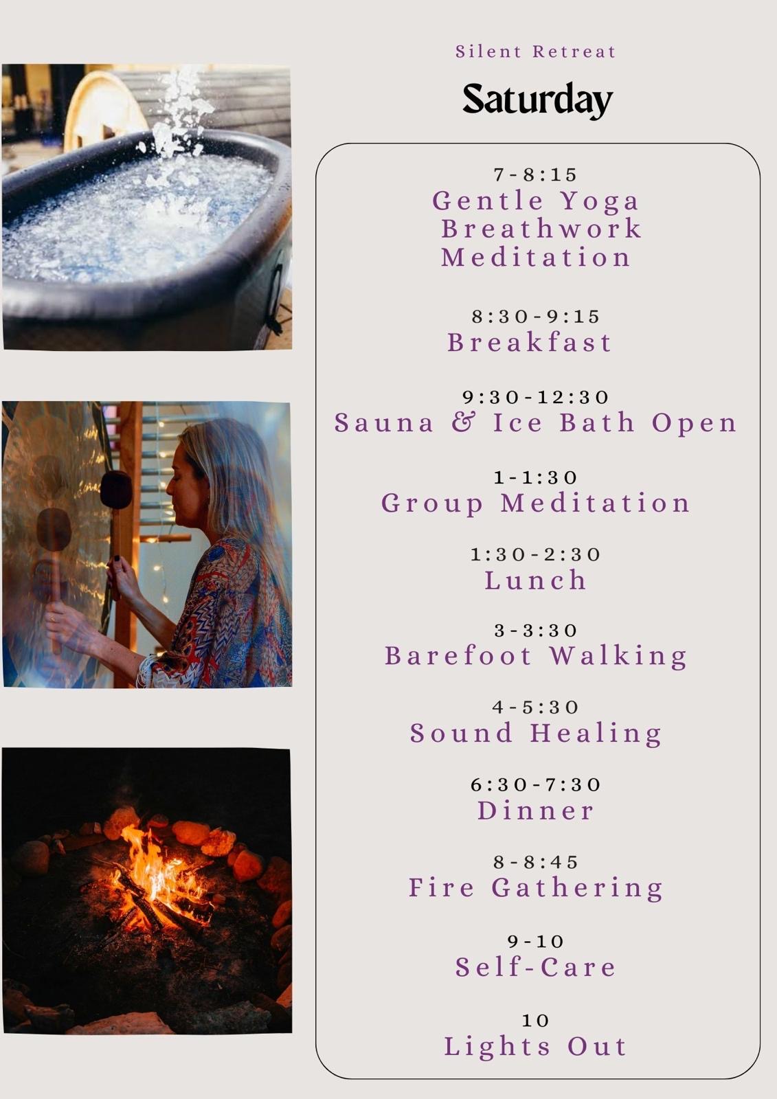 Group meditations, sound healing, yoga, circle time & sauna/ice-bath