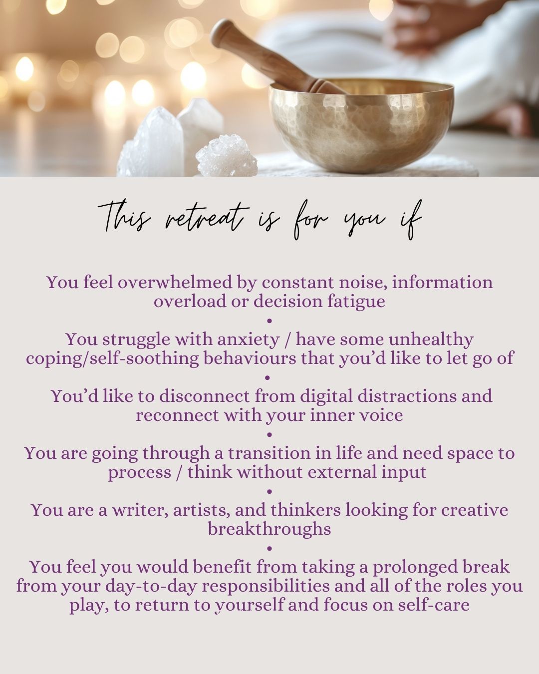 This retreat has been designed as an experience to hold you. You don't have endless hours just sitting there with yourself.